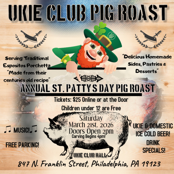 The Ukie Club on Franklin invites all of our members, friends and neighbors to join us at our many club-sponsored events. Our most popular events you'll want to be sure to attend are the annual St. Patrick's Day Pig Roast on the weekend of St. Patrick's Day, the Turkey Fry celebrated the night before Thanksgiving and our Annual Cinco De Mayo Celebration always held on May 5th weekend to kick off the summer season.